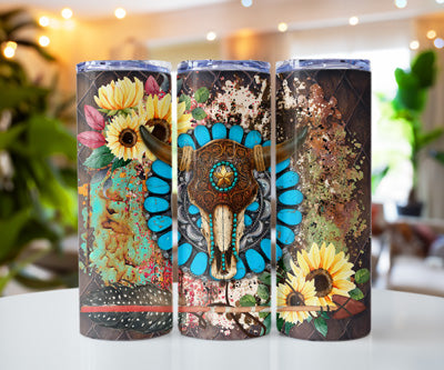 TURQUOISE SUNFLOWER HORNED SKULL